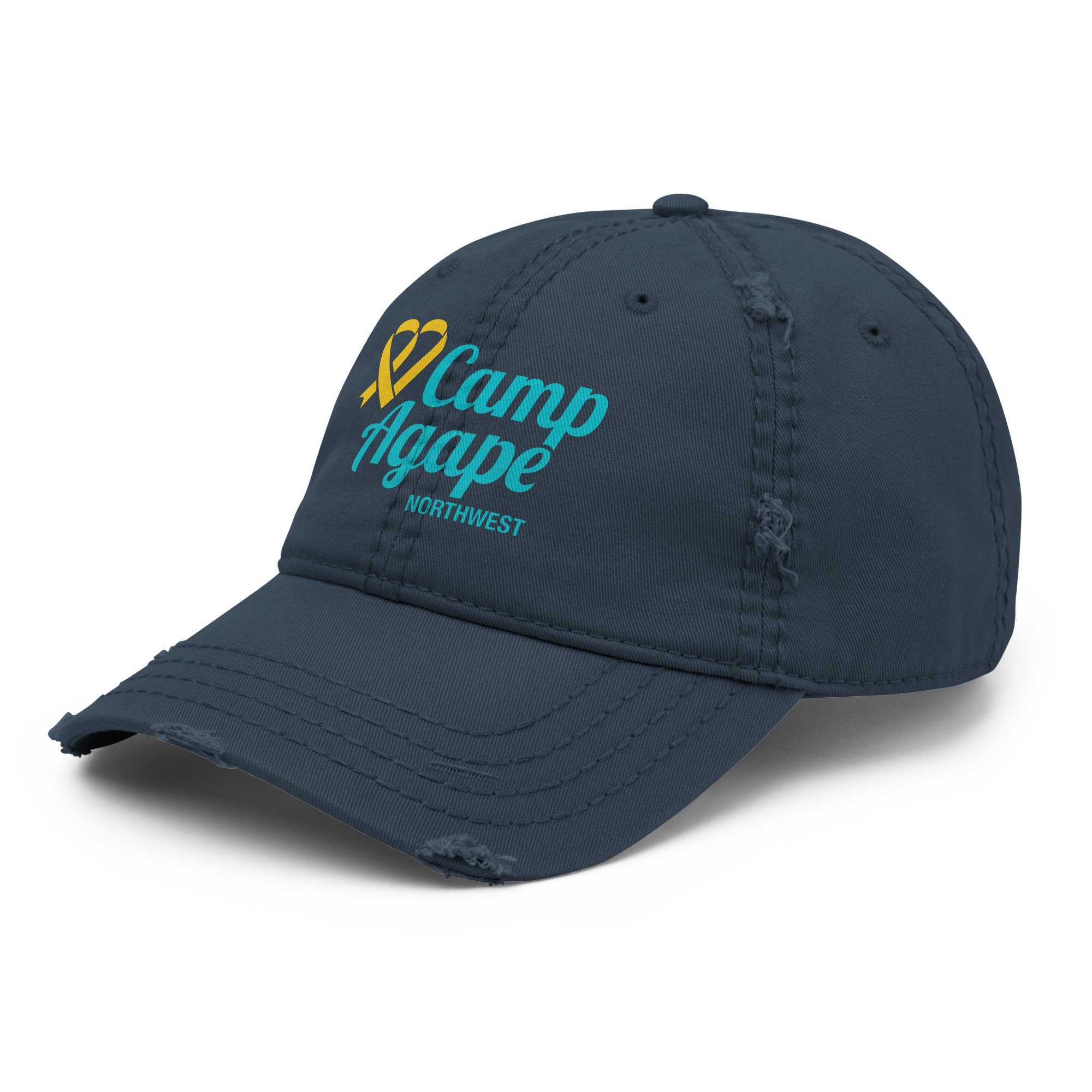The gold ribbon forms our signature heart, a symbol of childhood cancer awareness and the strength of the families we serve. The vibrant blue reflects the optimism of a bright summer sky, full of possibility, joy, and healing moments at camp. Together, these colors tell our story: a place where courage and hope meet, and where every child and family is embraced with love. A portion of each sale goest directly to Camp Agape Northwest.