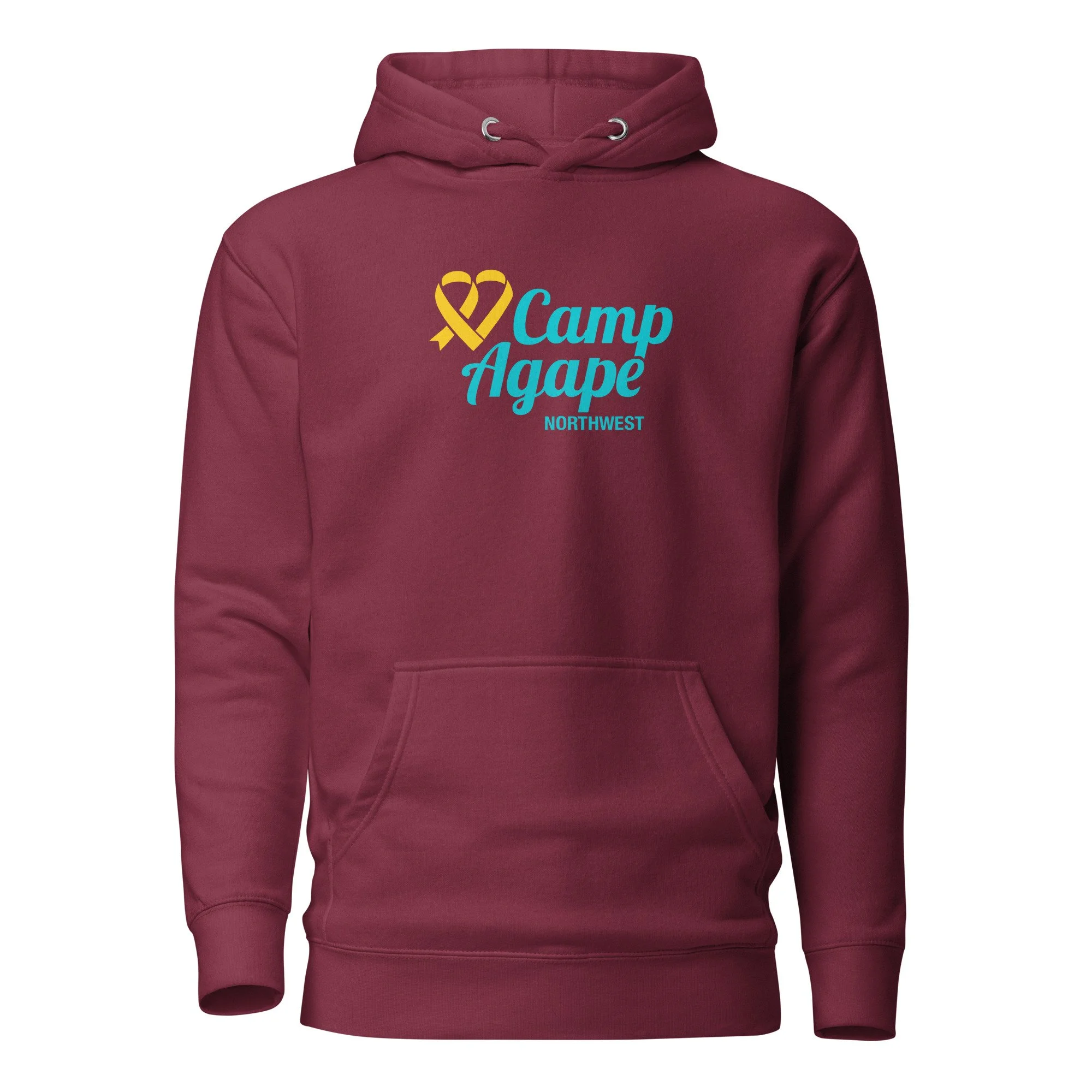 The gold ribbon forms our signature heart, a symbol of childhood cancer awareness and the strength of the families we serve. The vibrant blue reflects the optimism of a bright summer sky, full of possibility, joy, and healing moments at camp. Together, these colors tell our story: a place where courage and hope meet, and where every child and family is embraced with love. A portion of each sale goest directly to Camp Agape Northwest.